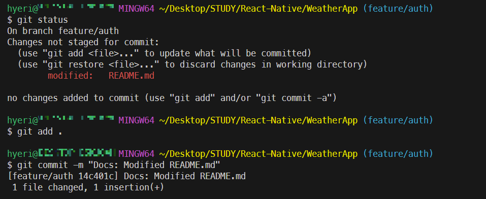 - ํด๋น ๋ธ๋์น์์ ๋ง์๊ป ๊ธฐ๋ฅ๊ตฌํ์ ์์ ํ ํ, ์๋ฃ๋๋ฉด ์ปค๋ฐ์ ํ๋ค.